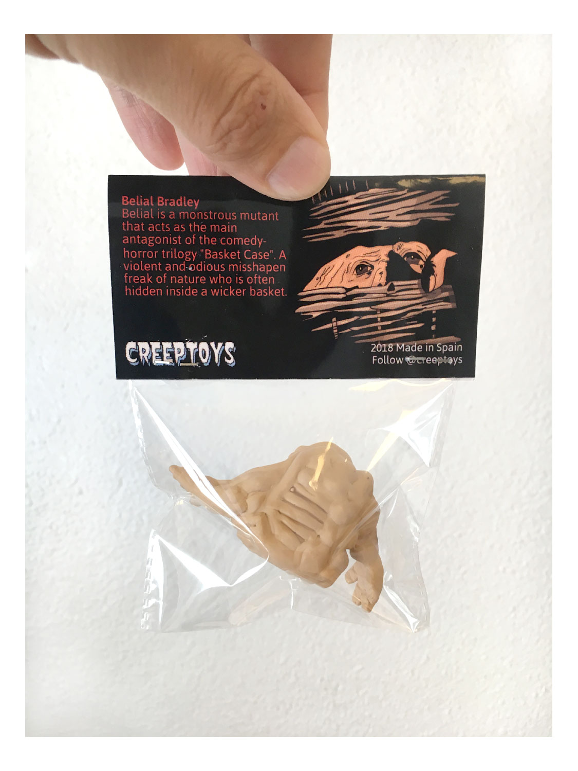 Belial is a monstrous mutant that acts as the main antagonist of the comedy-horror trilogy "Basket Case". A violent and odious misshapen freak of nature who is often hidden inside a wicker basket.