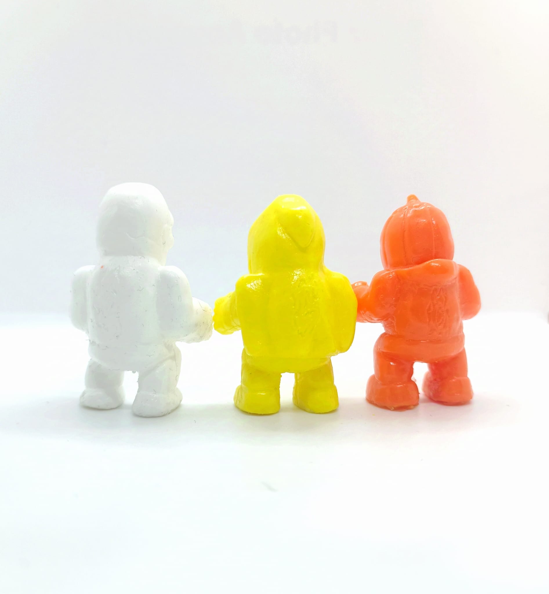 They come in random colors, orange, yellow & white, in each character.
